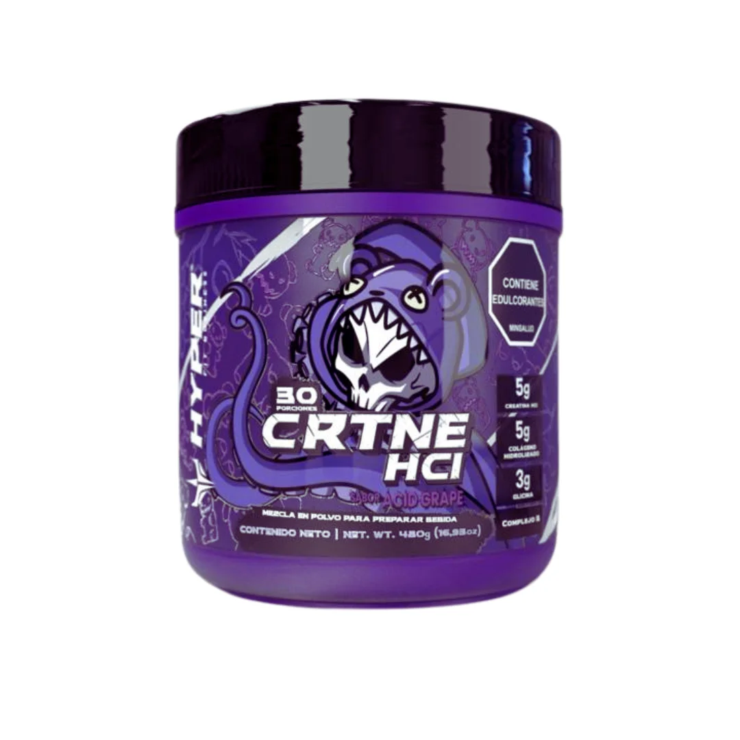 CRTNE HCL de Hyper supps es un suplemento «Post workout» 4 en 1. Formulado con creatina HCL, colageno hidrolizado, glicina y complejo B.